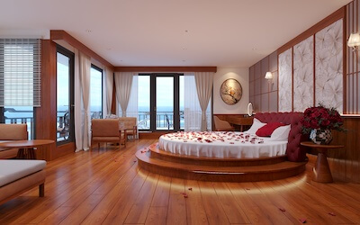 Một trong những điểm nổi bật nhất của Daichi Luxury Cruise chính là hệ thống 30 cabin cao cấp, được bố trí khoa học trên 4 tầng nổi sang trọng. Đây là lựa chọn lý tưởng cho kỳ nghỉ trăng mật, kỷ niệm ngày cưới hay chuyến du lịch gia đình cao cấp.