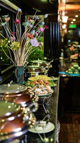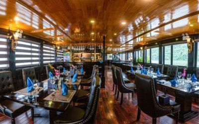 → Nhà hàng trên tàu phục vụ ẩm thực Việt Nam và hải sản tươi sống, đặc biệt là tiệc BBQ buổi tối trên boong tàu.