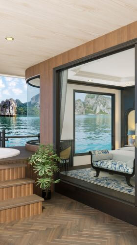 26 cabin sang trọng, mỗi cabin tối đa 2 người lớn và 1 trẻ em dưới 5 tuổi.