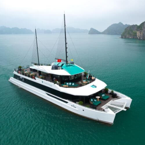 Du thuyền Hạ Long Catamaran Premium là phiên bản nâng cấp toàn diện ra mắt vào tháng 3/2024 với thiết kế hai thân hiện đại, sang trọng theo phong cách châu Âu. Sở hữu chiều dài 40m, rộng 9,6m cùng không gian tinh tế đến từng chi tiết, du thuyền mang đến trải nghiệm hoàn toàn khác biệt trên hành trình khám phá vịnh Hạ Long – Lan Hạ. Với sức chứa lên tới 99 khách, trang thiết bị đạt chuẩn quốc tế và kết cấu thân thép vững chắc, Catamaran Premium không chỉ là biểu tượng của sự đẳng cấp giữa vịnh mà còn là nơi du khách tận hưởng trọn vẹn vẻ đẹp của “viên ngọc xanh” vùng Đông Bắc. Đây chắc chắn là lựa chọn lý tưởng cho những ai yêu biển, yêu thiên nhiên và mong muốn tận hưởng hành trình nghỉ dưỡng hoàn hảo giữa kỳ quan thế giới.