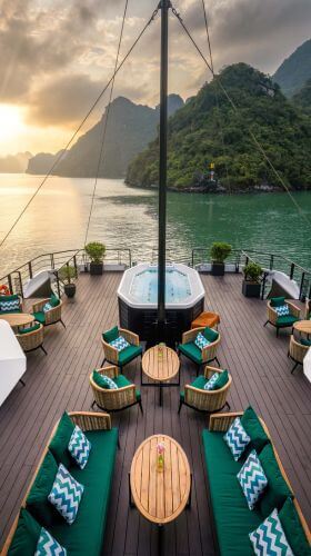 → Du thuyền có sức chứa tối đa 99 khách, phù hợp cho cả đoàn khách lẻ, nhóm gia đình, công ty, hoặc team building. Không gian boong tàu rộng, đảm bảo sự thoải mái cho mọi du khách.