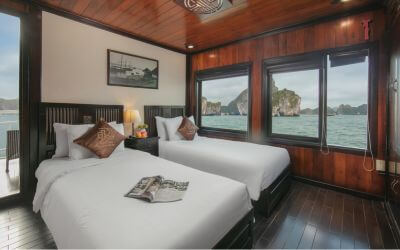 Ruby Cruise có 14 cabin, với các loại phòng Deluxe, Premium Deluxe Ocean View và Suite Balcony.