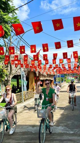 Sau bữa trưa, du thuyền di chuyển đến cảng Việt Hải, đoàn rời tàu lên xe điện vào tham quan làng Việt Hải.
